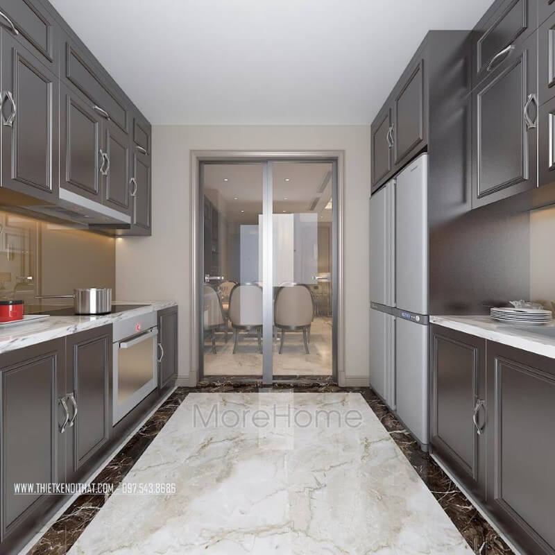 Nội thất phòng bếp chung cư gỗ công nghiệp phong cách hiện đại
