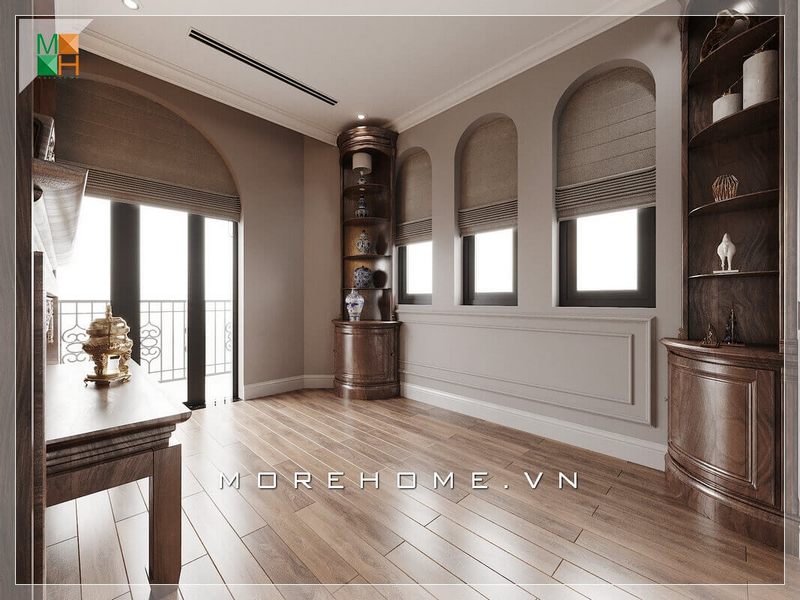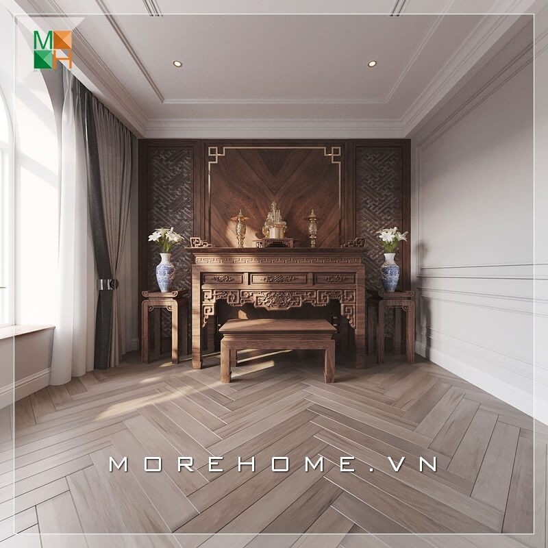 Với lòng thành kính cũng như sự am hiểu về cách bố trí, thiết kế phòng thờ sao cho hợp phong thủy, Morehome xin giới thiệu quý vị ý tưởng bố trí phòng thờ thờ Phật Quan Âm trong dự án thiết kế nội thất biệt thự Vinhomes Imperia Hải Phòng.