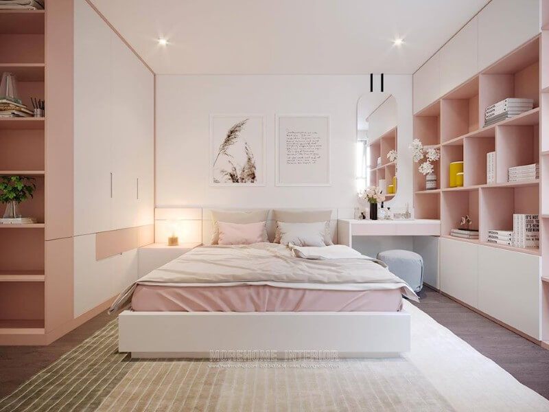 Thiết kế nội thất giường ngủ con gái phong cách hiện đại, dễ thương