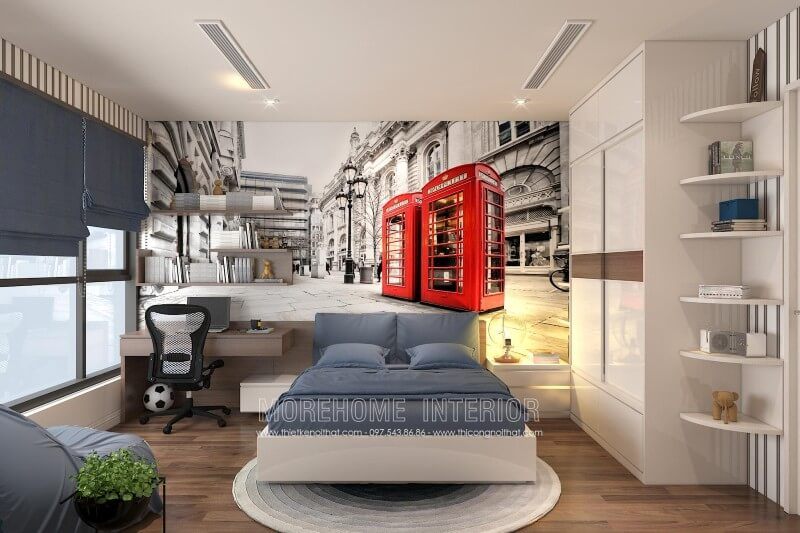 Mẫu thiết kế nội thất giường ngủ con trai phong cách hiện đại, trẻ trung