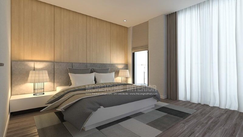 Thiết kế giường ngủ thấp kết hợp tab đầu giường liền kề, tạo sự thuận tiện và thoải mái cho gia chủ trong quá trình sử dụng