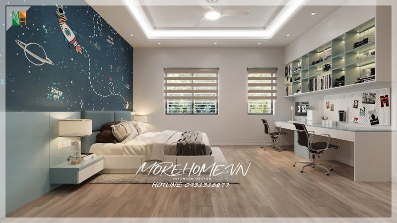 Điểm thú vị của căn phòng sự phân bố các gam màu thú vị ở mọi vị trí tạo nên một phòng ngủ sinh động hấp dẫn.