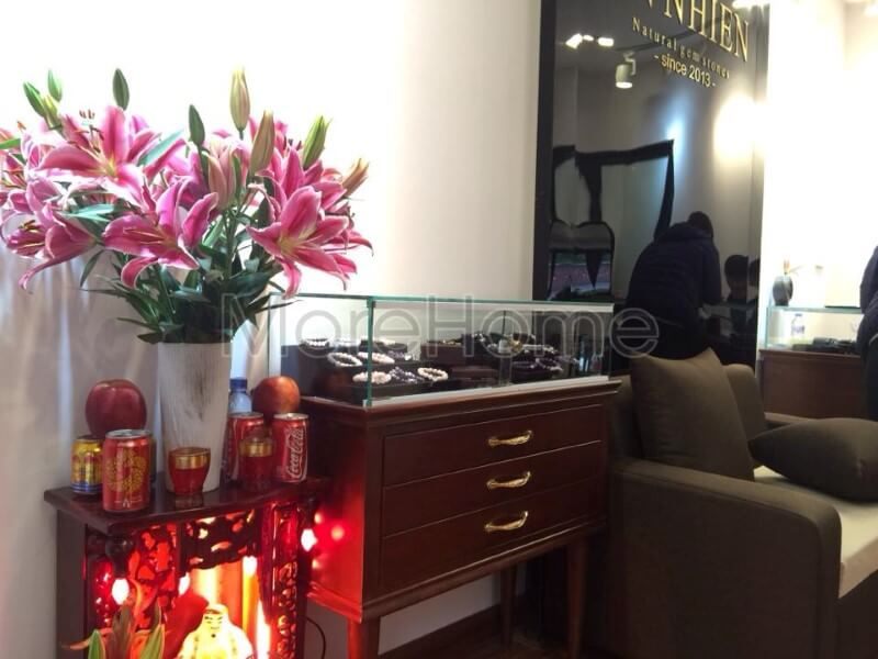 Mẫu tủ gỗ trưng bày với kiểu dáng hiện đại đẹp mắt, có ngăn kéo tiện nghi và kính cường cao cấp được thiết kế và đóng tại xưởng gỗ nội thất MoreHome.
