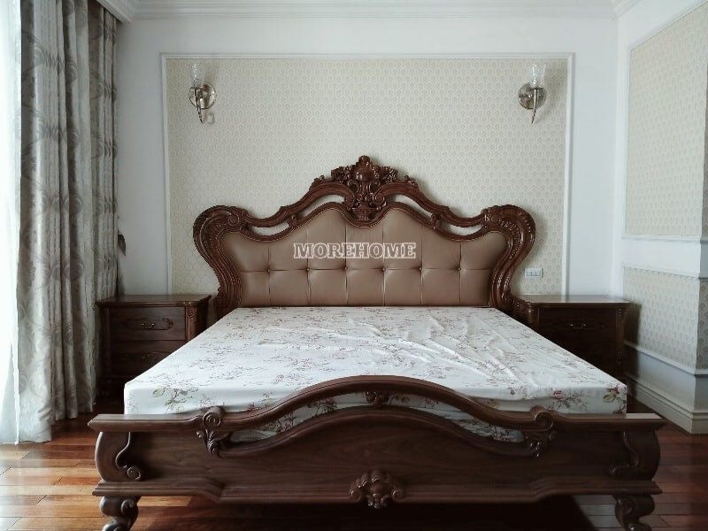 Công việc lắp đặt giường gỗ óc chó tân cổ điển được thực hiện tại Hải Phòng cho một biệt thự.